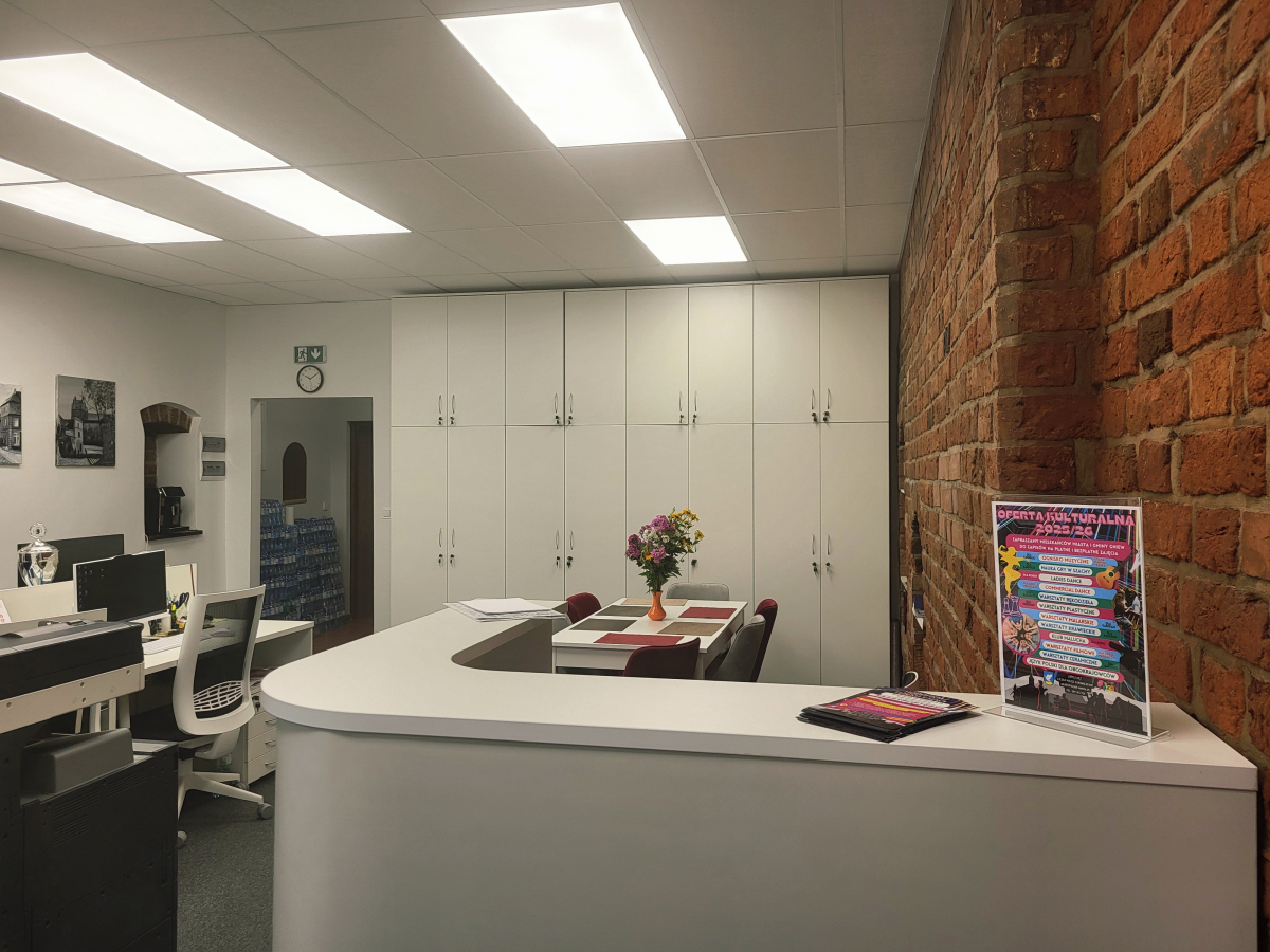 Dziś te niedogodności należą do przeszłości. Centrum Kultury i Biblioteka Publiczna w Gniewie zyskało nową, estetyczną elewację zewnętrzną, a jego wnętrza przeszły kompleksową metamorfozę. Gruntownie odnowione zostały biblioteka, czytelnia oraz administracja, oferując teraz przestrzenie w pełni nowoczesne, jasne i funkcjonalne.